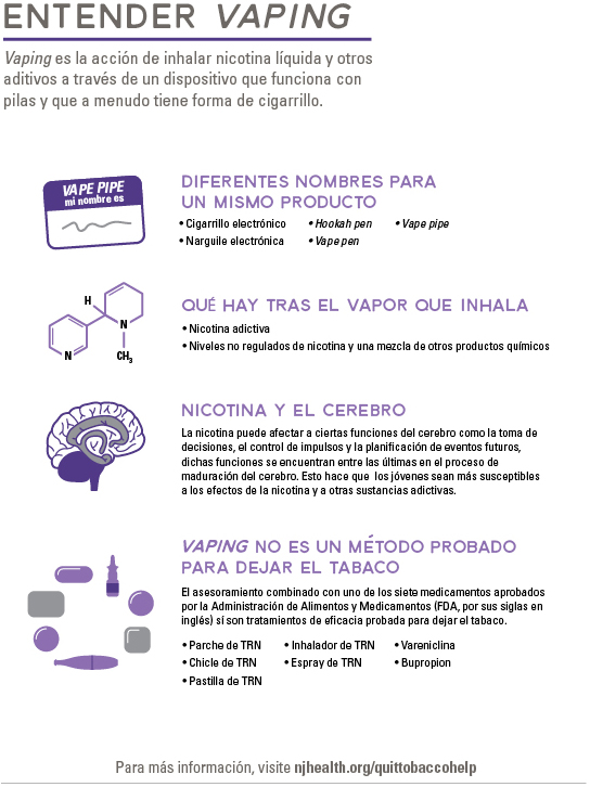 Vapear es el acto de inhalar líquido y otros aditivos a través de un dispositivo alimentado por batería que a menudo parece un cigarrillo.